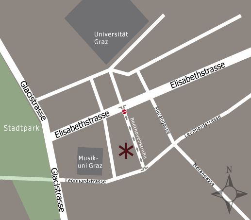 Sie erreichen uns mit dem Bus über die Haltestelle Universität / Beethovenstraße