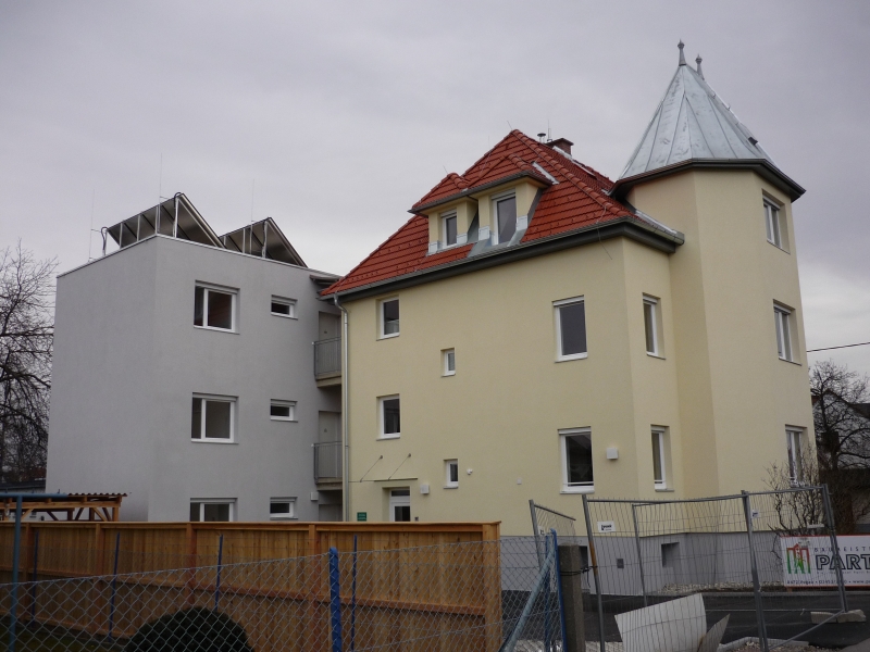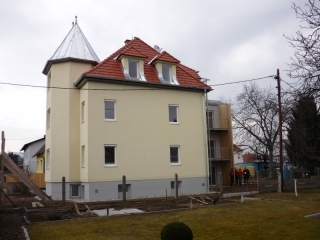 Neu- und Umbau eines Wohnhauses. Neubau als Mauerwerksbau mit Fundamentplatte und Deckenplatten aus Stahlbeton. Umbau mit Deckenerneuerungen, Ertüchtigungen der Holzdecken mit Aufbeton und Unterfangungsarbeiten.