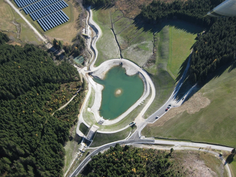 Ausschotterungsbecken einschließlich Begleitdämme für den Geschiebe- und Wildholzrückhalt