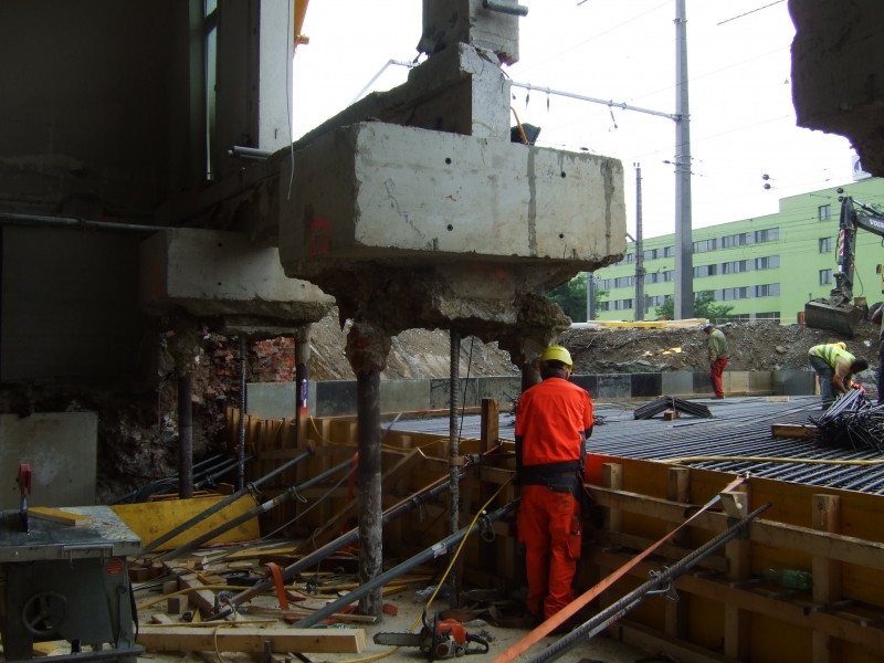 Stützbauwerke mit Gebäudeunterfangungen für den 4-streifigen Ausbau mit Geh-und Radweg der Eggenbergerstraße.