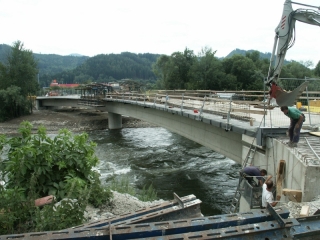 Vorgespanntes Plattenbalkentragwerk im Bogen als 2-Feldträger mit einer gesamten Stützweite von 100 m (53 + 47 m)